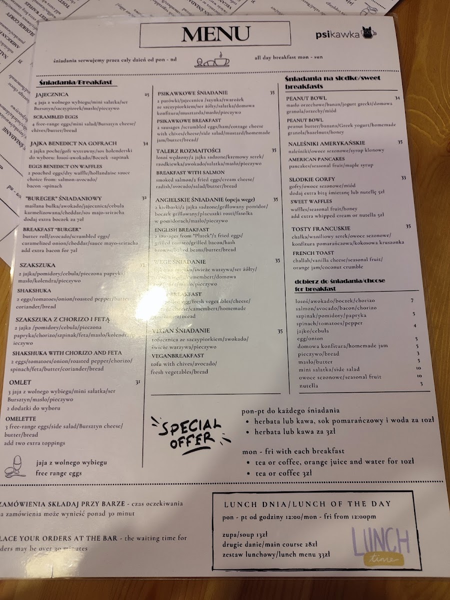 The menu at Psikawka - Psia Kawiarnia offers a thoughtfully curated selection that fits its inviting and casual atmosphere. Here, you’ll find a variety of comforting breakfast and lunch options alongside simple café bites, making it an ideal spot to start your day or enjoy a relaxed midday meal.