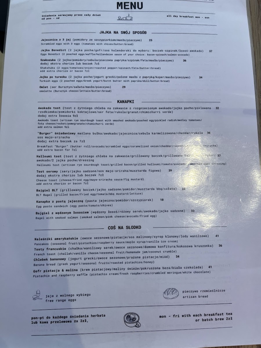 Pastries and desserts add a gentle sweetness to the menu, with selections like the Tarta Cytrynowa, Tort Orzechowy, and the café’s well-regarded Sernik. These choices naturally complement a quiet afternoon coffee, such as a smooth Tonic Espresso or a classic brew.